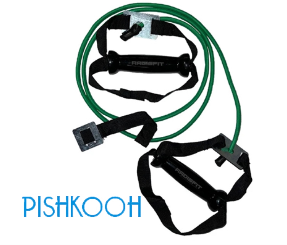 کش ورزشی همه کاره مدل All in One رادیس فیت با طول حدوداً 2 متر از جنس کش رشته ای مقاوم بوده و یکی از انواع کش های ورزشی در بین انواع کشهای این شرکت است . لازم به ذکر است قدرت کش ها بر حسب رنگ آنها متفاوت هستند که به ترتیب رنگ قرمز ، نارنجی ، مشکی ، آبی و سبز از قدرت زیاد به قدرت کم می باشد . این کش برای انجام انواع تمرینهایی که نیاز به کش دارند مناسب بوده و قابلیت کشسانی تا دو برابر طول عادیاش را دارد . این کش ورزشی دارای یک قلاب از جنس تسمه برزنتی بسیار محکم بوده که با انداختن و فیکس کردن آن پشت در، میتوان دامنه حرکات را بسیار گسترش داد و حرکات مختلفی را با آن انجام داد . این محصول دارای جای پا نیز هست که به راحتی می توان حرکات پا را نیز با آن انجام داد .